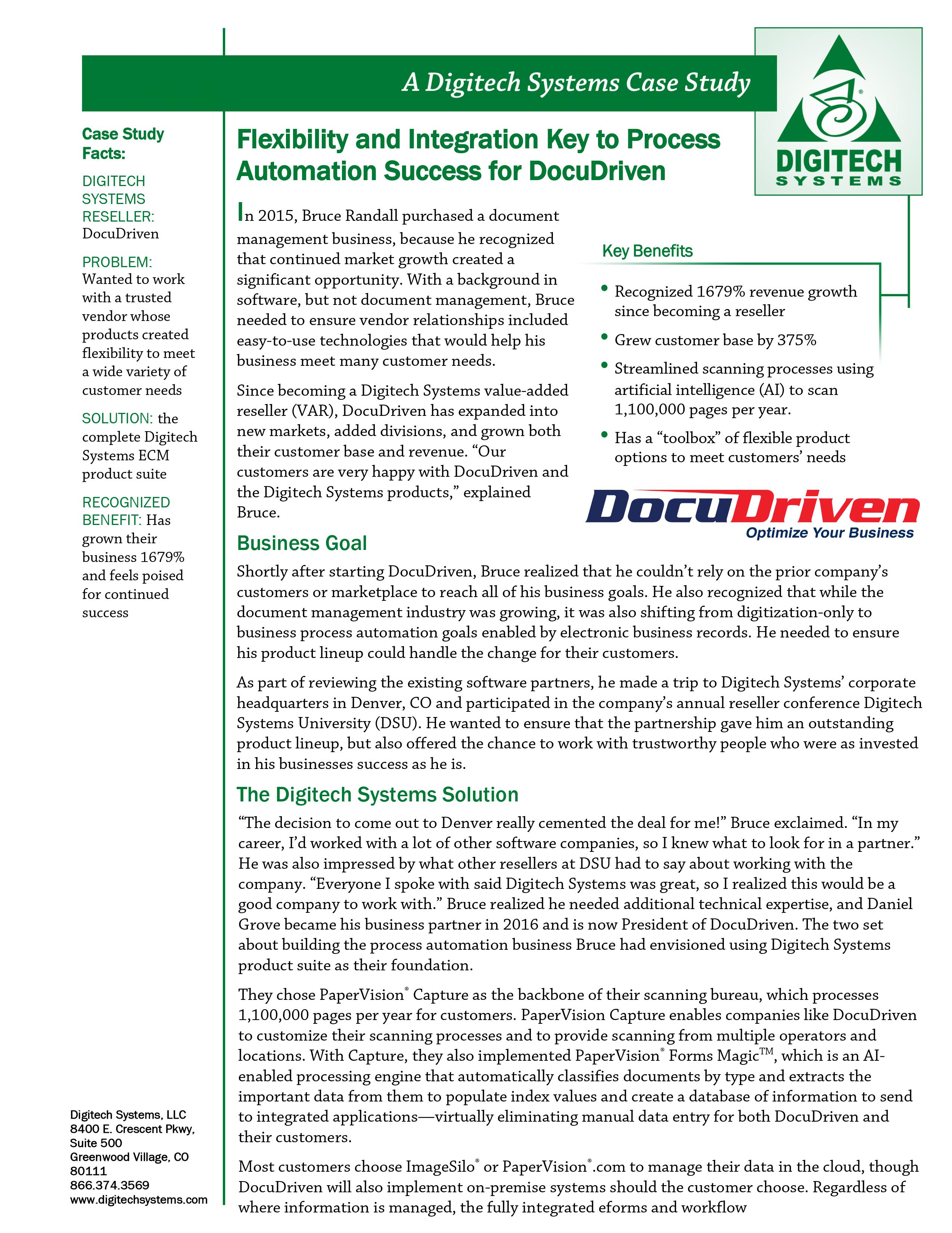 As a reseller, DocuDriven has built a trusted document management business that is able to help customer meet their evolving information management needs. Reading through this case study, you can find specific benefits that DocuDriven has experienced since becoming a Digitech Systems reseller like: