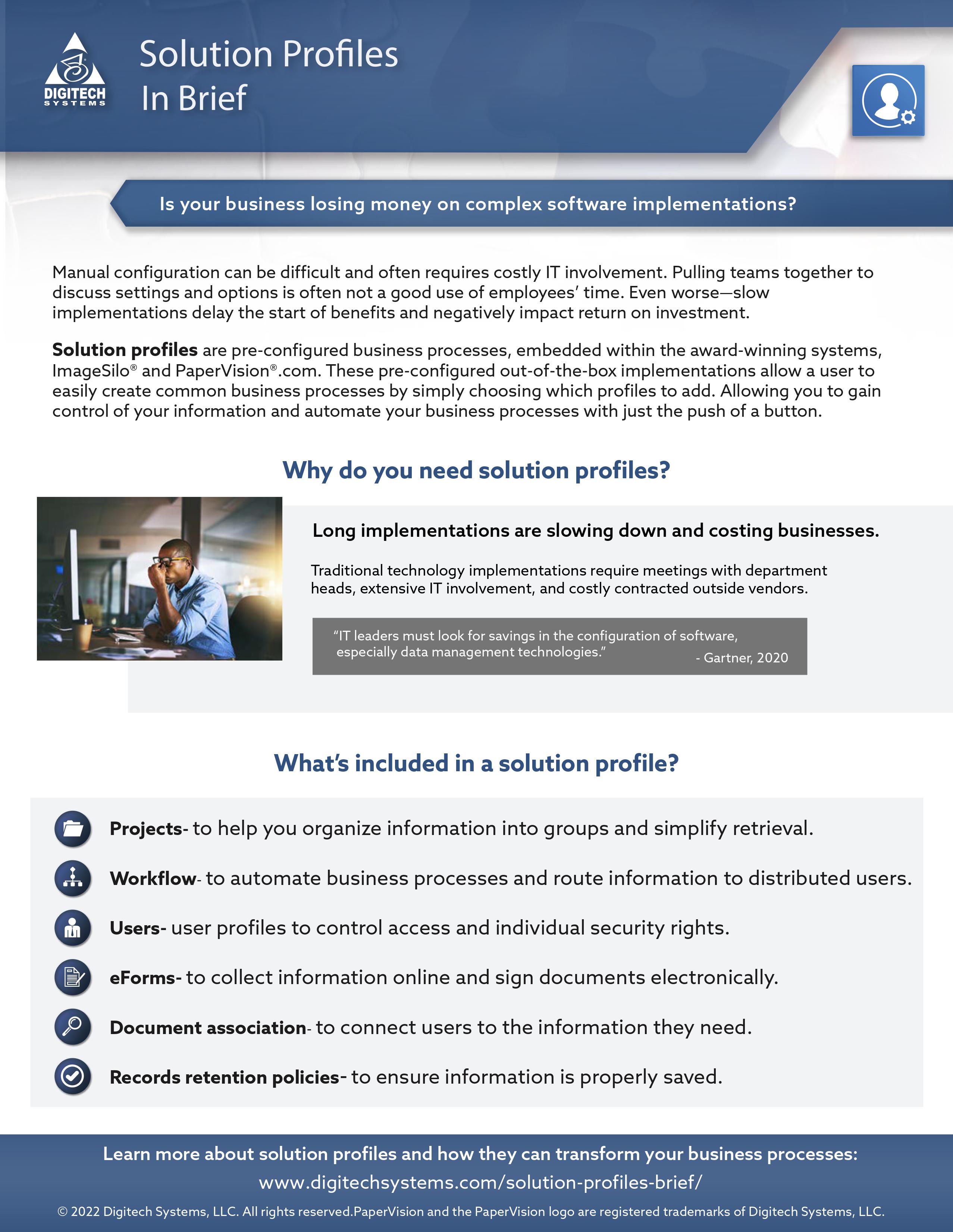 By reading this brief you will learn about all things solution profiles, including: